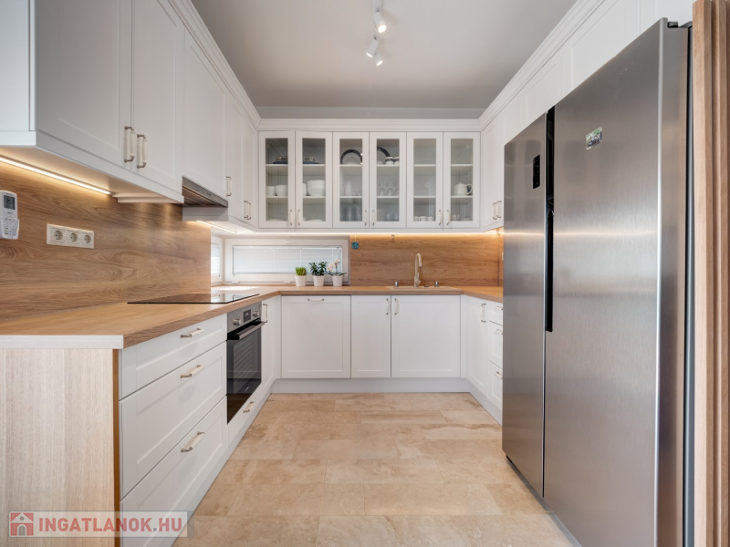 - burkolatok : tölgy szalagparketta, kerámia a vizes helyiségekben