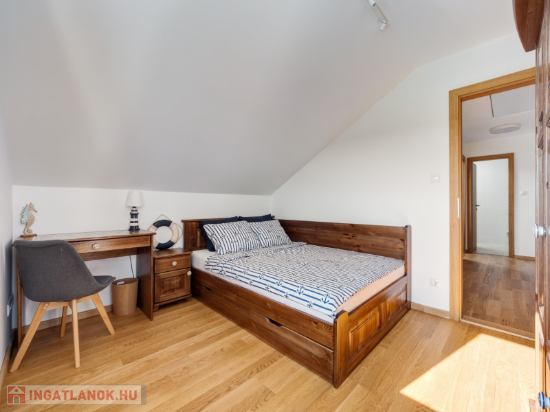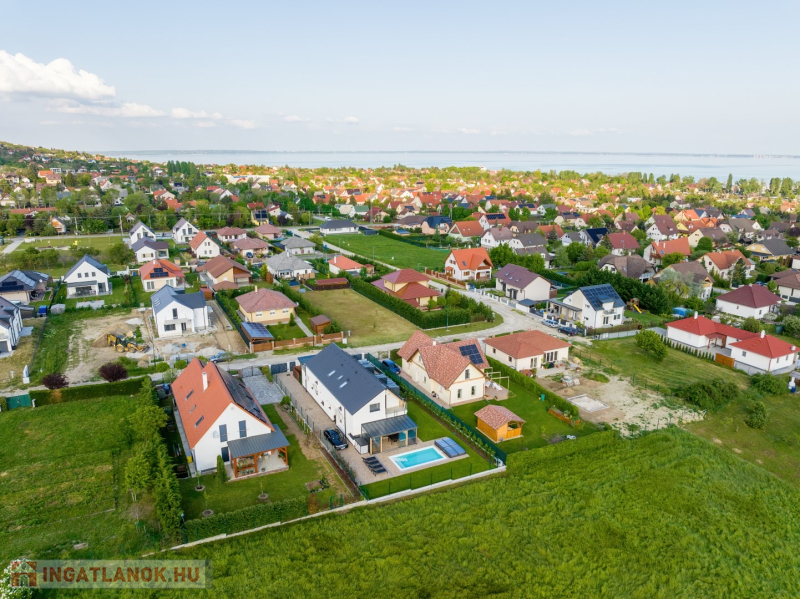 Alsóörs csendes, nívós részén, újszerű családi házak környezetében kínálunk eladásra ezt a minden igényt kielégítő, 2022-ben épült ikerház hátsó, nem utcafronti részét, 472 m2 telekrésszel.