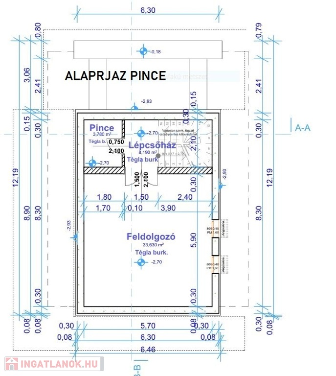 A tervezett gazdasági épület 146 m2 nettó alapterületű, háromszintes, pince + földszint + tetőtér kialakítású.